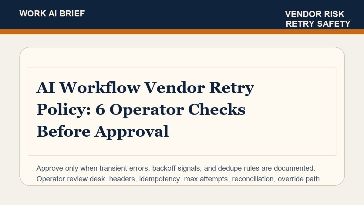 Quick answer: approve a vendor retry policy only when the docs prove four things in writing: which errors are retryable, how the caller knows when to wait, how duplicates are prevented on mutating requests, and how operators can stop or reconcile indeterminate failures.